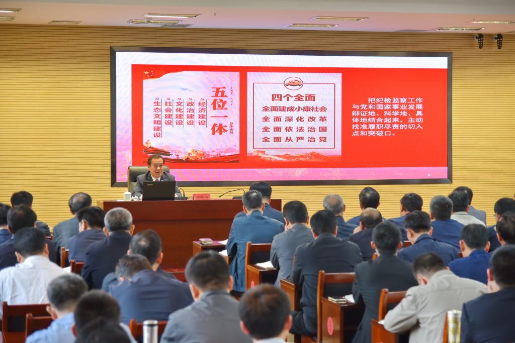 根据“不忘初心、牢记使命”主题教育工作安排,11月8日下午,市委常委、市纪委书记、市监委主任张晓峰在市纪委市监委机关为全市纪检监察干部讲专题党课。市委第五巡回指导组组长王承策到会指导。