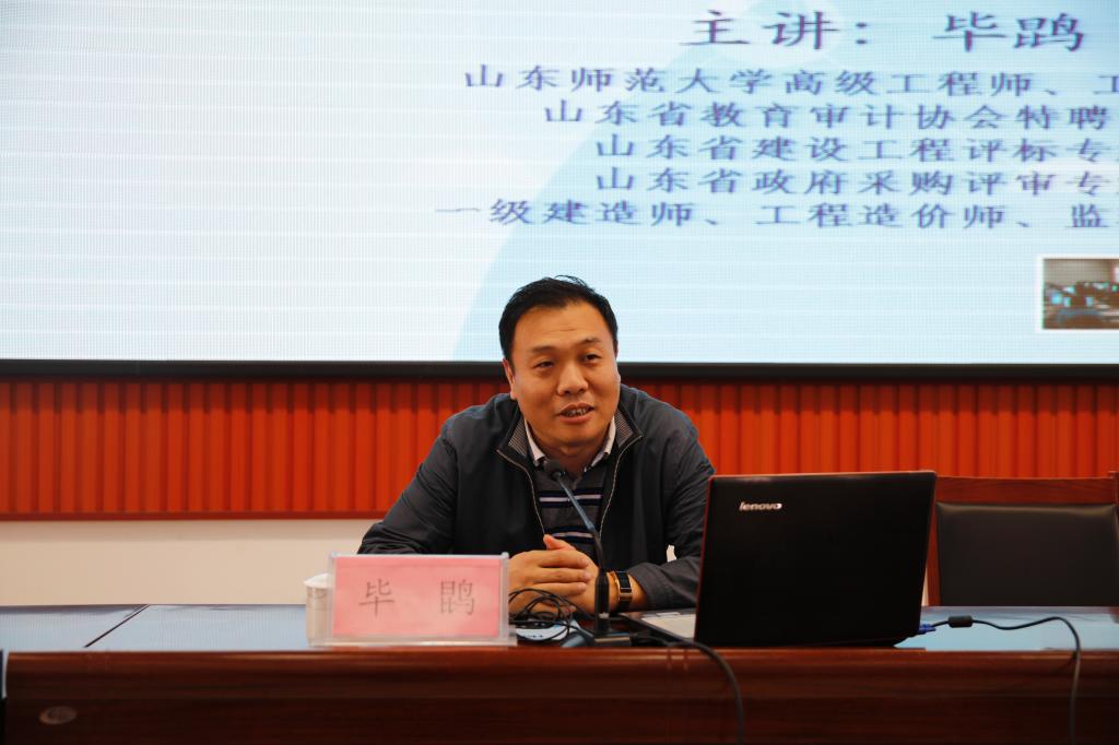 毕鹍主要从内部审计的重要性、内部控制的建设和工程项目风险防控三方面进行了详细讲解,讲座内涵丰富,深入浅出,既有理论高度,又有很强的现实针对性和指导性。此次讲座让参会的各位都产生了强烈的共鸣,提高了大家的风险意识、对加强风险控制、完善内部管理、规范业务活动、推动学院健康发展提供了有益启发和借鉴。