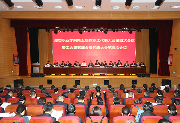 4月19日,潍坊职业学院第五届教代会第四次会议暨工代会第三次会议在滨海校区图书馆一楼报告厅召开。学院党委书记马跃启,院长王家爱,党委副书记宋桂言,学院领导赵君堂,副院长贺志强、李瑞昌,纪委书记郭晓辉,党委委员、办公室主任谭明,工会主席王剑波等大会主席团成员出席大会并在主席台前排就座。大会正式代表、列席代表250余人参加会议。