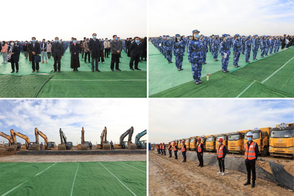 王家爱宣布滨海校区B区开工,与会领导和嘉宾共同挥锹培土为B区奠基。